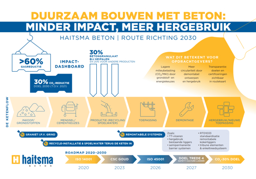 Bij Haitsma Beton geloven we dat de bouwsector een sleutelrol speelt in de duurzame transitie. Daarom werken we elke dag aan oplossingen die de milieu-impact van onze producten en processen structureel verlagen. Van watergebonden transport en slimme materiaalkeuzes tot remontabel ontwerp, hergebruik van grondstoffen en vergaande elektrificatie: we zetten concrete stappen richting een circulaire, veilige en CO₂-arme toekomst.