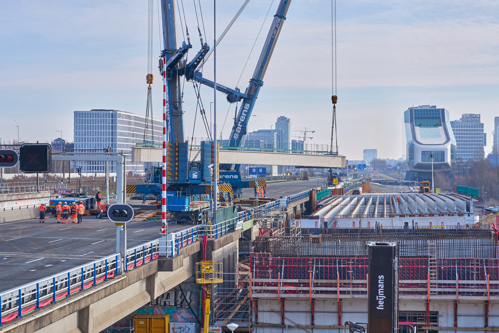 In het weekend van 14/15 februari 2026 zijn de eerste prefab voorgespannen brugliggers gemonteerd voor de nieuwe Schinkelbrug. De grootschalige reconstructie van knooppunt De Nieuwe Meer is onderdeel van de vernieuwing van de A10 Zuid. De bruggen over de rivier de Schinkel vormen een complex bruggenstelsel waar snelwegverkeer, spoor, metro en scheepvaart samenkomen. De weguitbreiding voorziet in twee extra rijstroken in beide richtingen en nieuwe overspanningen om capaciteit, veiligheid en doorstroming binnen dit hoogbelaste verkeersknooppunt te verbeteren.